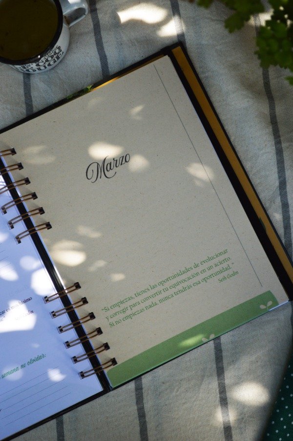 🍄 Anotaciones, con hojas rayadas y frase inspiracional al pie de página.